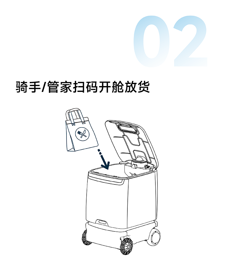 騎手憑碼存餐,機器人自主接駁,從小區門口直達家門口